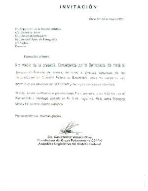 Por medio de la presente, Convergencia por la Democracia los invita al desayuno-conferencia de prensa, en tornp a diversas denuncias de las irregularidades en Comisión Federal de Electricidad, sobre las cuales se han tenido diversas sesiones con SECODAM y de cuyos avances se informará.