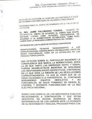 UNA PETICIÓN SOBRE EL PARTICULAR SIGUIENDO LA CONGRUENCIA QUE MARCA LA NORMATIVIDAD, SERIA LA DE QUE TANTO LAS EMPRESAS SEPAC Y SENSA, FUERAN INHABILITADAS MIENTRAS SE DESLINDAN LAS RESPONSABILIDADES RESPECTIVAS, CONTENIDAS EN LA QUIE SERA LA EMISION DE LAS RESOLUCIONES CORRESPONDIENTES, YA QUE EL DAÑO QUE SE LE SIGUE CAUSANDO A LA PARAESTATAL AL CONTINUAR ADQUIRIENDO EQUIPOS OBSOLETOS Y NO FUNCIONALES, SE SIGUE PONIENDO EN RIESGO EL CONTROL Y EFICIENTE FUNCIONALIDAD DE LA RED ELÉCTRICA NACIONAL.