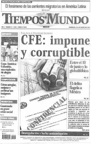Herencia de las administraciones salinista y zedillista, respectivamente, el régimen del presidente Vicente Fox tiene en su poder documentos que relacionan corrupción, obras por miles de millones de dólares y una vasta red de complicidades que van de la Comisión Federal de Electricidad, involucran firmas de reconocidas empresas trasnacionales y nombres de funcionarios públicos... (Continúa...)