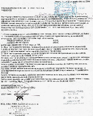 Por mi propio derecho y bajo protesta de decir verdad, solicitando me sea reconocida la personalidad legal que exhibo al entregar a ustedes copia simple de mi CREDENCIAL PARA VOTAR y mostrar el original con folio 08681551 y con fundamneto en el Artículo No.1 del Codigo Federal de Procedimientos Penales, respetuosamente me dirijo a ustedes solicitando resuelvan el ejerciciio de la acción penal, en contra de Telefonos de México S.A. de C.V y demás que resulten responsables. con dirección en Parque Vía 198, Col Cuauhtémoc C.P. 06599 México, D.F., RFC TME840315-K76, en base a los siguientes hechos: