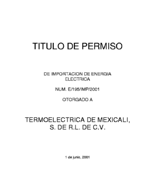Este permiso autoriza a Termoeléctrica de Mexicali, S. de R.L. de C.V., (en lo sucesivo y para los efectos del permiso denominada como la permisionaria) a importar energía eléctrica de acuerdo con los derechos y las obligaciones que se derivan de las siguientes: